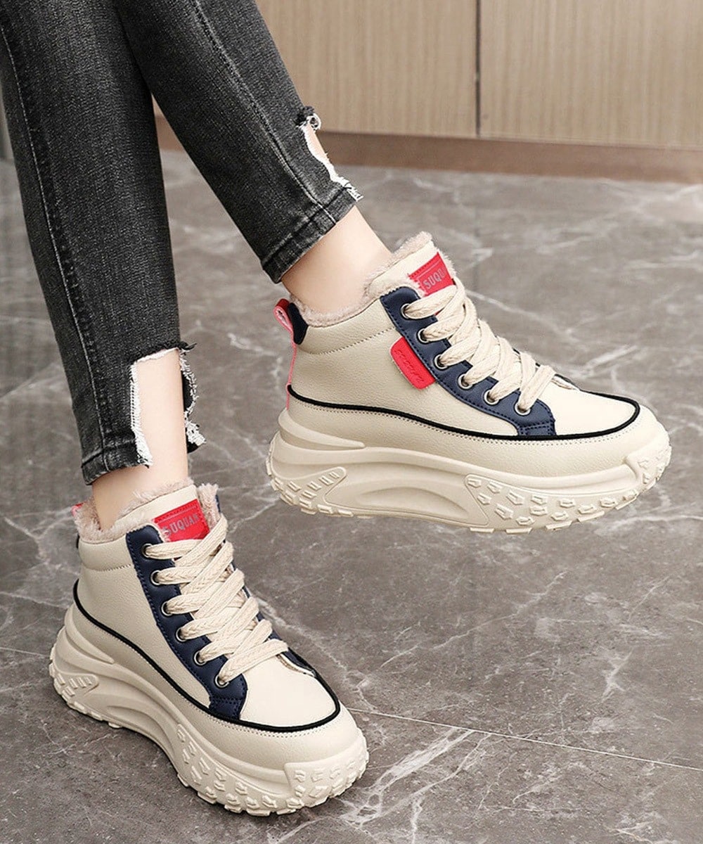 本日メガ割スニーカー 流行り厚底靴 裏起毛 厚底スニーカー ハイカット韓国風