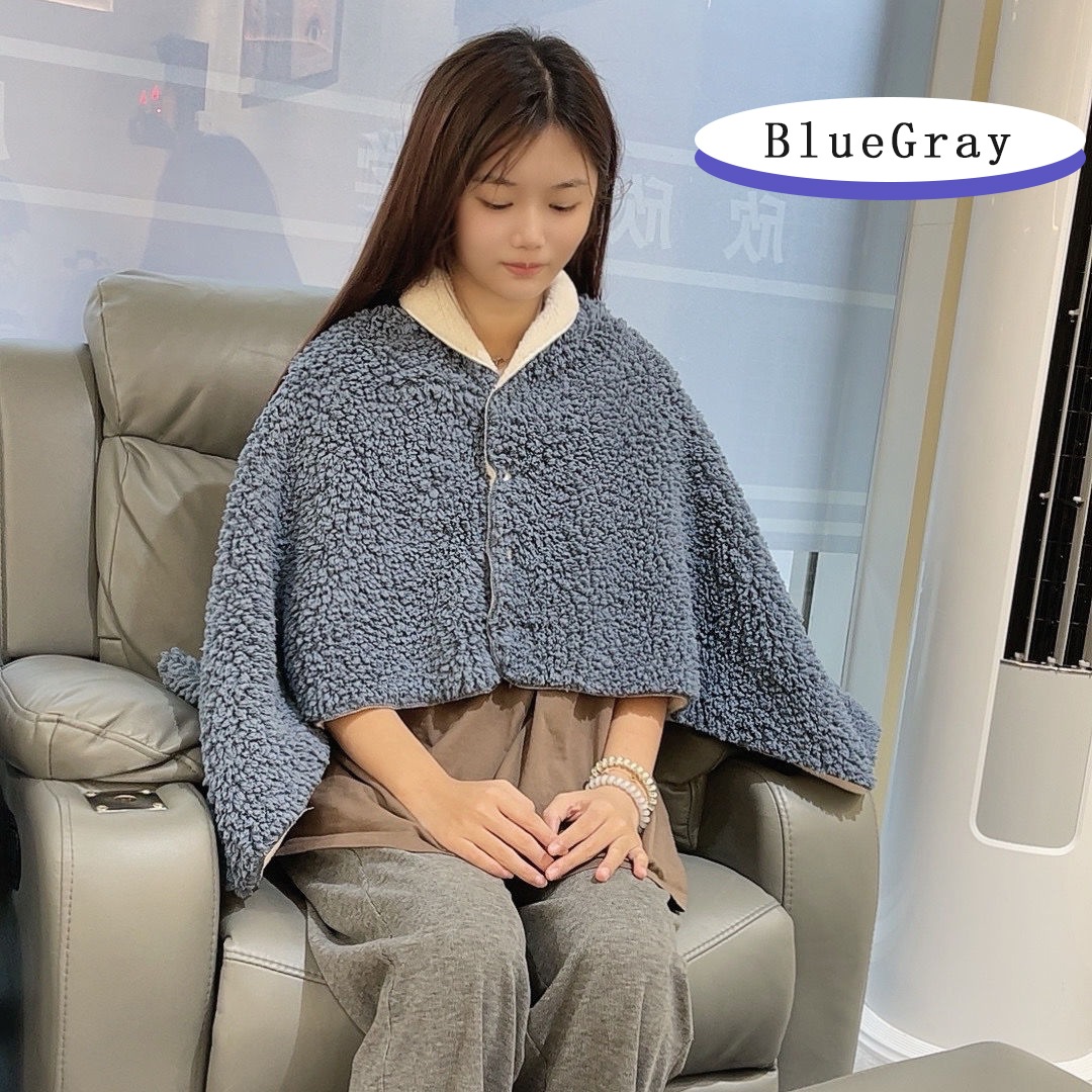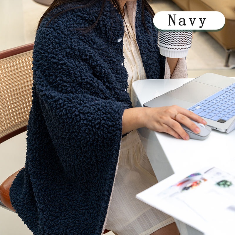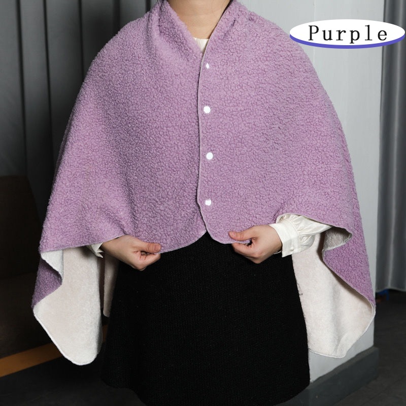 肩掛け毛布 モコモコボア生地 暖か毛布 ひざ掛け ボタン付き肩掛け ブランケット 防寒対策 毛布 ショール