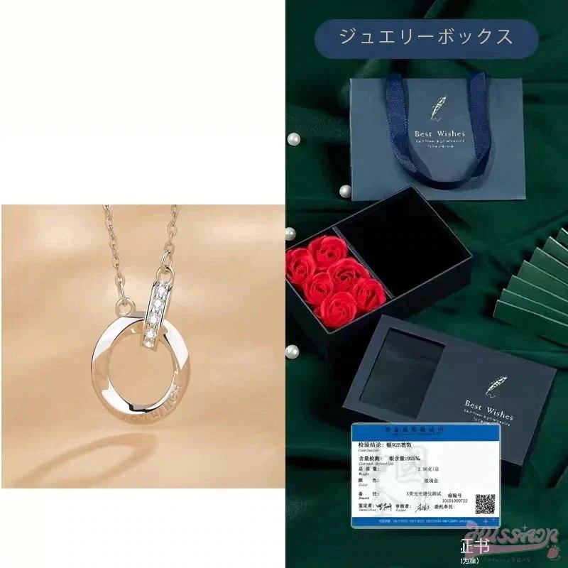 シルバ-925 大切な人への贈り物 シルバー ダブル リング ネックレス おそろい アクセサリー ギフトボックス付き シンプル 2個 クリスマス