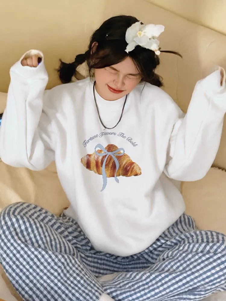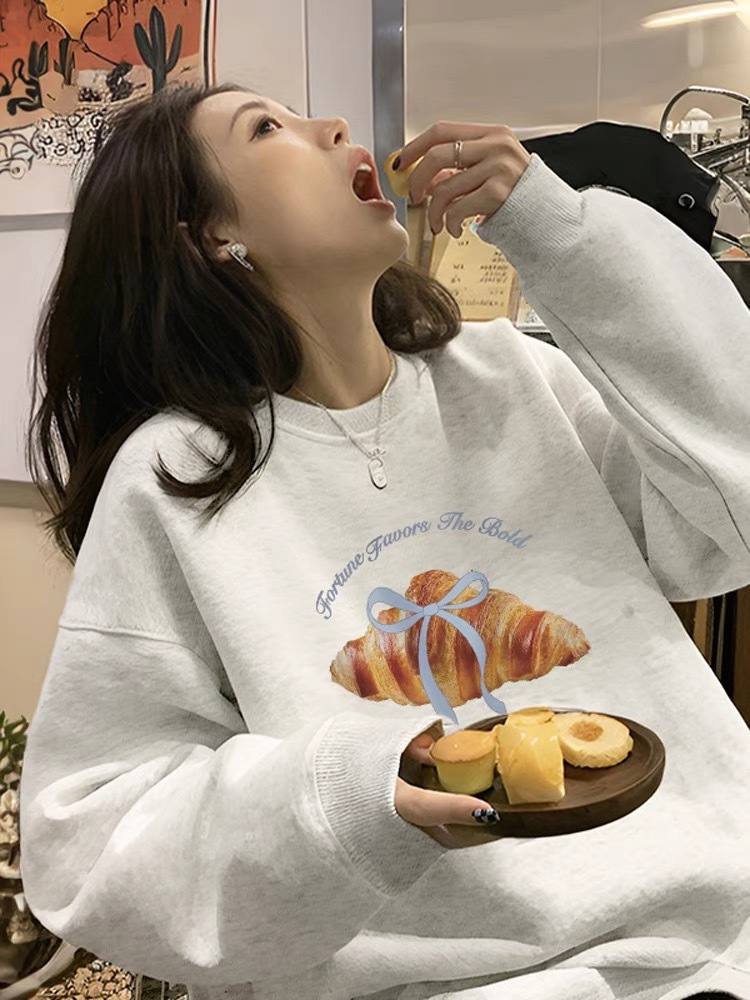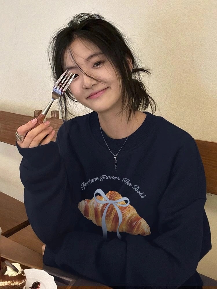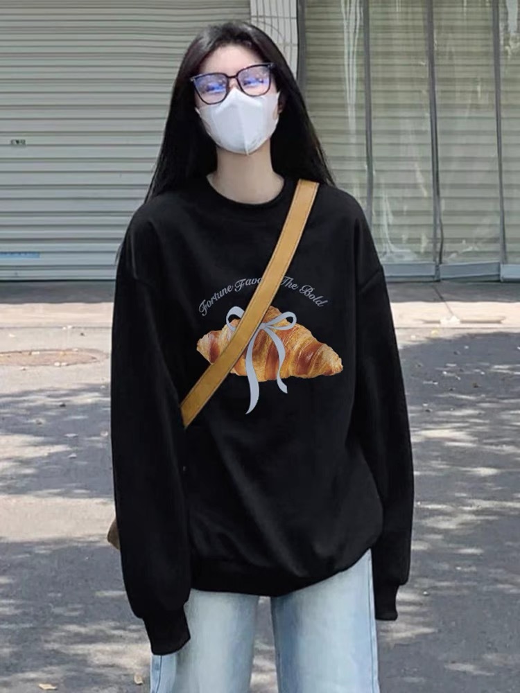 2024 秋冬 トレンド薄手トップス長袖かわいいK-POPTロング黑白レディース韓国風ロゴ衣装ルーズゆったりプリントおしゃれサイズスリーブシルエットファッション系サイドシャツフット