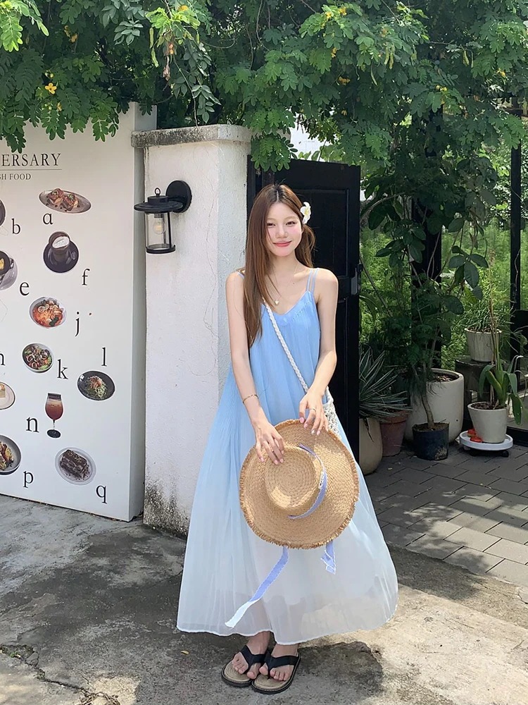 2024春夏グラデーション キャミワンピース ノースリーブ ワンピース ロングワンピース ルーズ 体型カバー レトロ 韓国ファッション