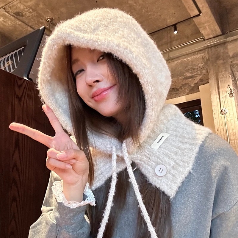 2024秋冬 防寒あったか マフラー レディース単品 小顔効果 キュートな フード付きあったかキュートフェイクかわいいファッション お揃い コーデ帽子スタイルアップウールタッチ