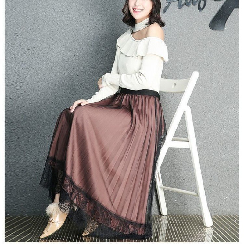 【リバーシブル】スカート レディース 秋冬新作 大きいサイズ ハイウエスト レース プリーツスカート ミモレ丈 スリム メッシュスカート