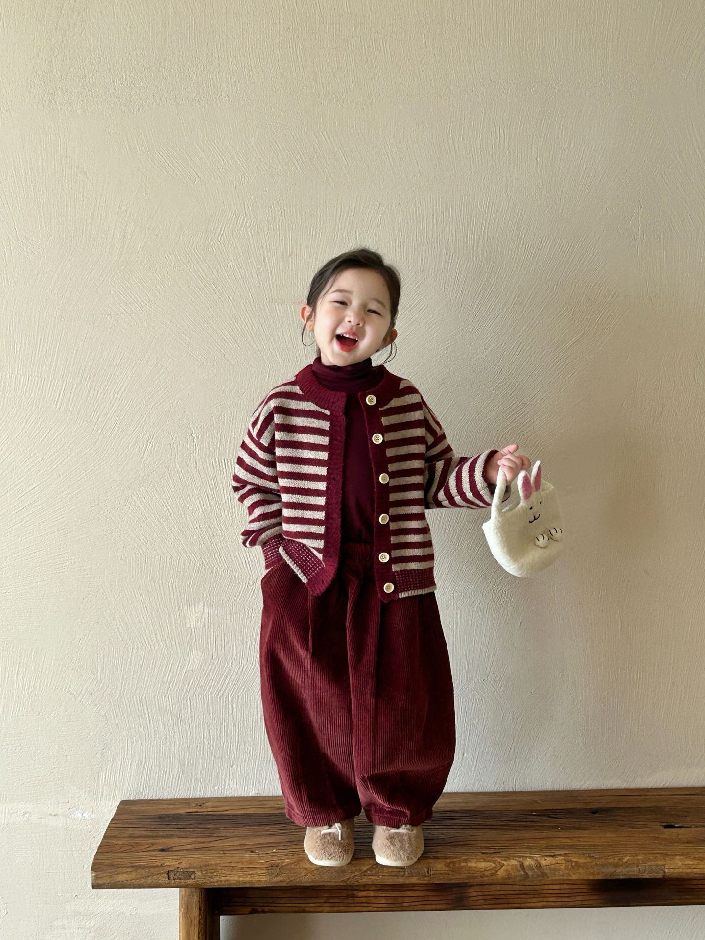 2025秋冬新作子供用レッドストライプニットカーディガンアルパカのセーター ファッション子供服 女の子 男の子 キッズ アウター