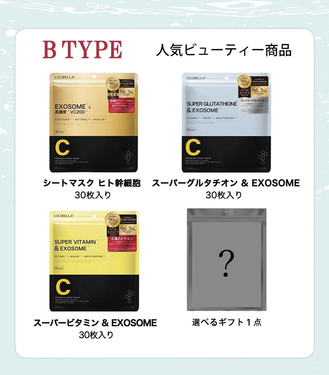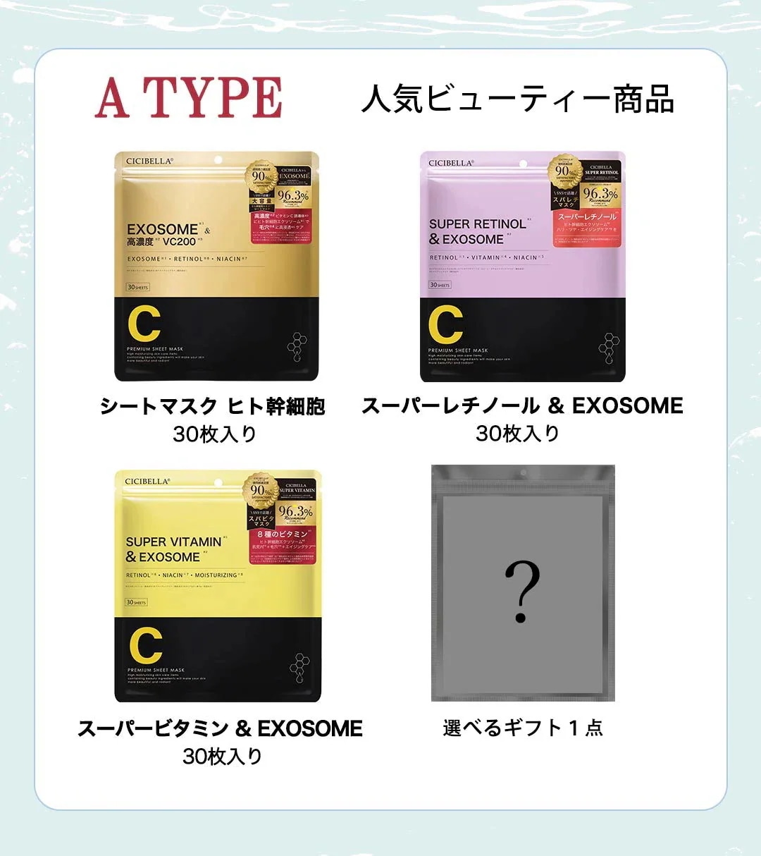 5 5to_*** 2025.02.01 タイプ:Cタイプ おまけ:7枚シートマスクオプション : タイプ:Cタイプ / おまけ:7枚シートマスク 肌タイプ : 混合肌 肌トーン : ブルベ 肌の悩み : ニキビ・肌荒れ, 毛穴, くすみ・色むら, シミ