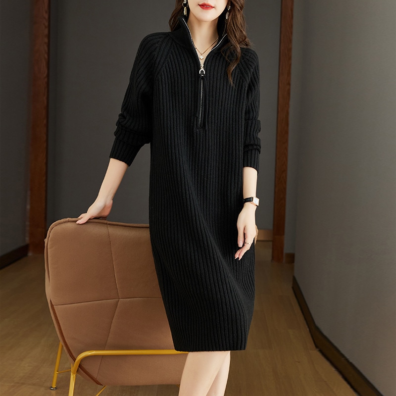 ニットワンピース ドレス 韓国ファッションシンプル セーター ワンピース Vネックロングワンピース インナーワンピース ワンピース パーティードレス トップス 長袖 ワンピース