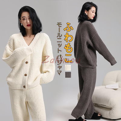 パジャマ モールニット 寝間着 暖かい ウェア レディース 長袖 カーディガン ロングパンツ 上下セット もこもこ パジャマ あったか 部屋着