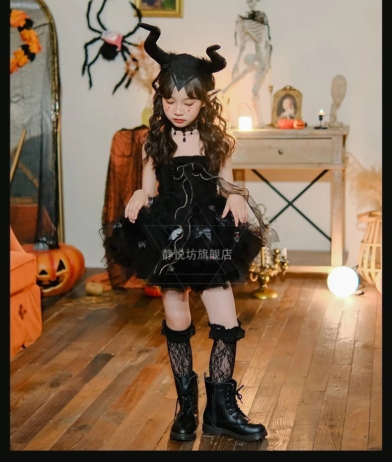 【魔女ワンピース】ハロウィン 30%までに制限仮装 子供服 チュールワンピース ブラック キッズ