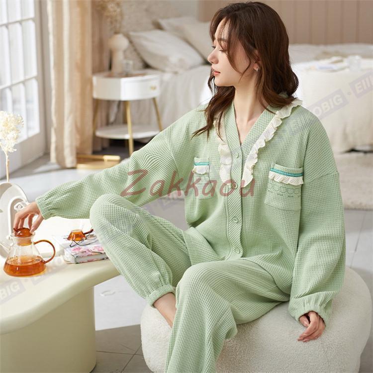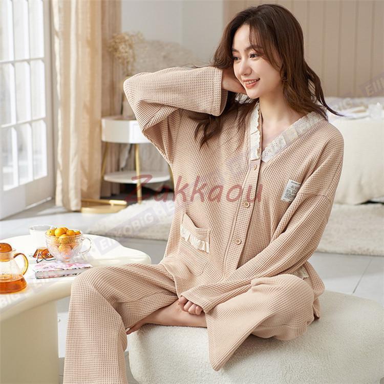 新品 大人気 レディース ルームウェア 前開き パジャマ 春秋 秋冬 長袖セット 安い シンプル 大人 ゆったり 上下セット 2点セット 部屋着 可愛い