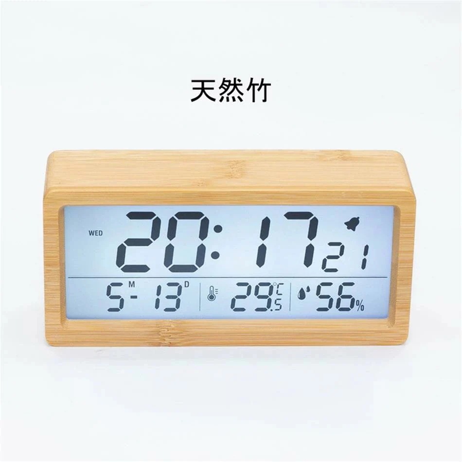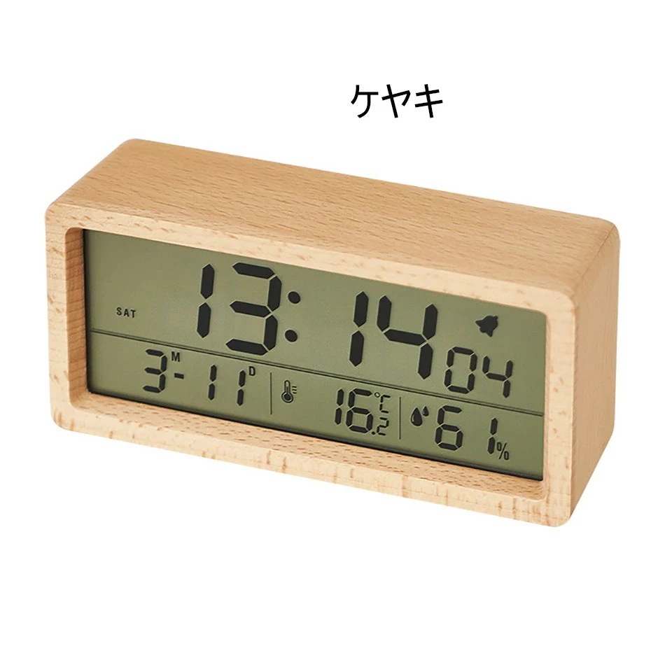 卓上時計 デジタル置き時計 木目調 卓上 北欧 デジタル アラーム 木製 ウッド LED表示 日付 温度 カレンダー 湿度 光る 輝度調節 連続秒針 目覚まし時計 サペリ ヤケキ
