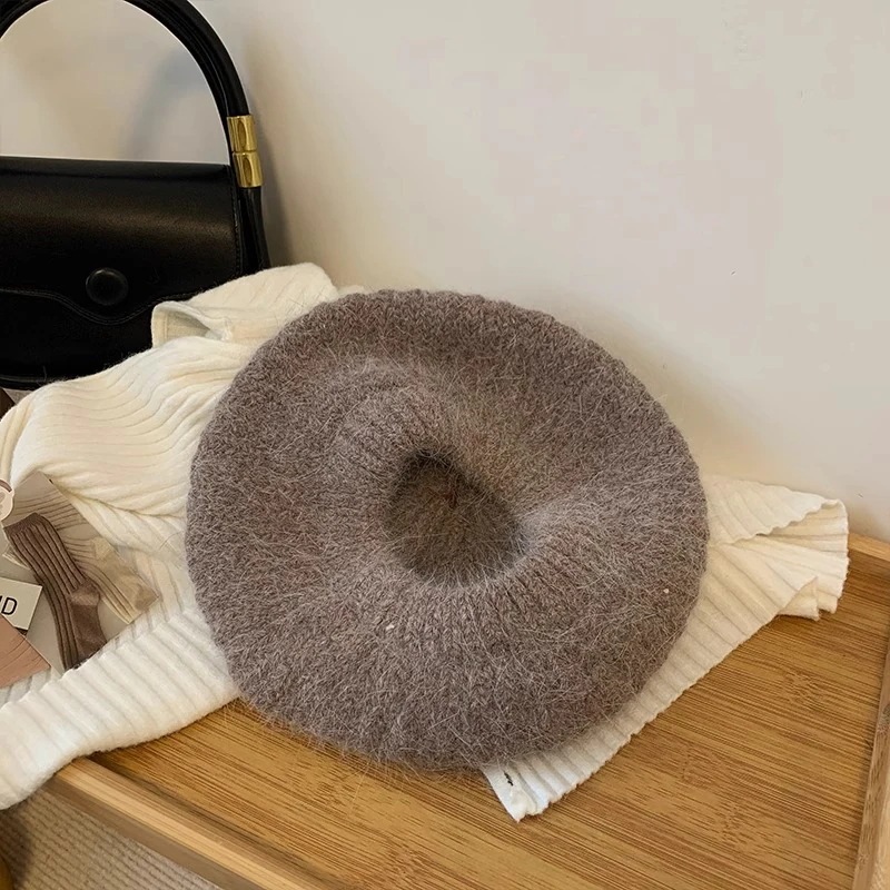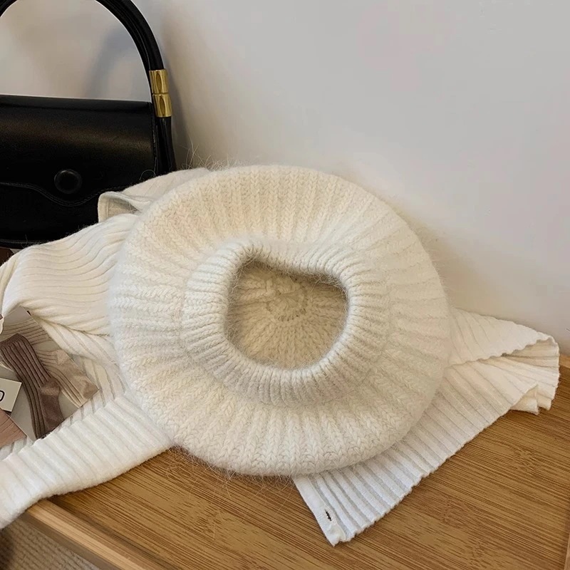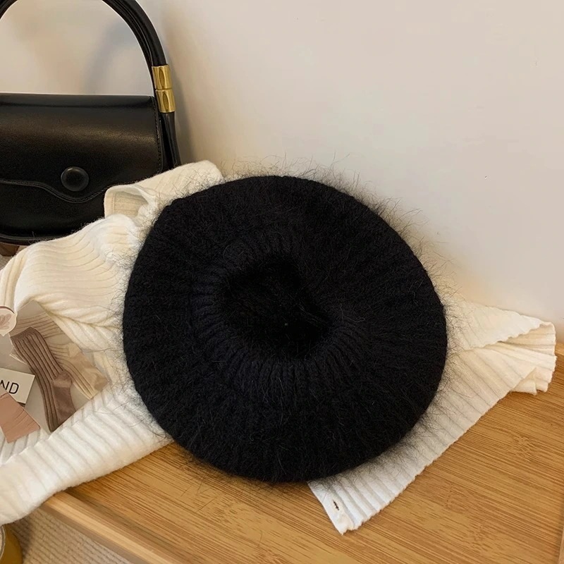 韓国ニット帽ベレー帽冬韓国版ニットウールブルーショースモールハット