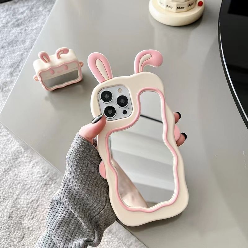 3日出荷 iPhoneスマホケーススマホケースかわいいウサギの耳のミラー iPhone 14promax Apple 13 phone case 11 sili