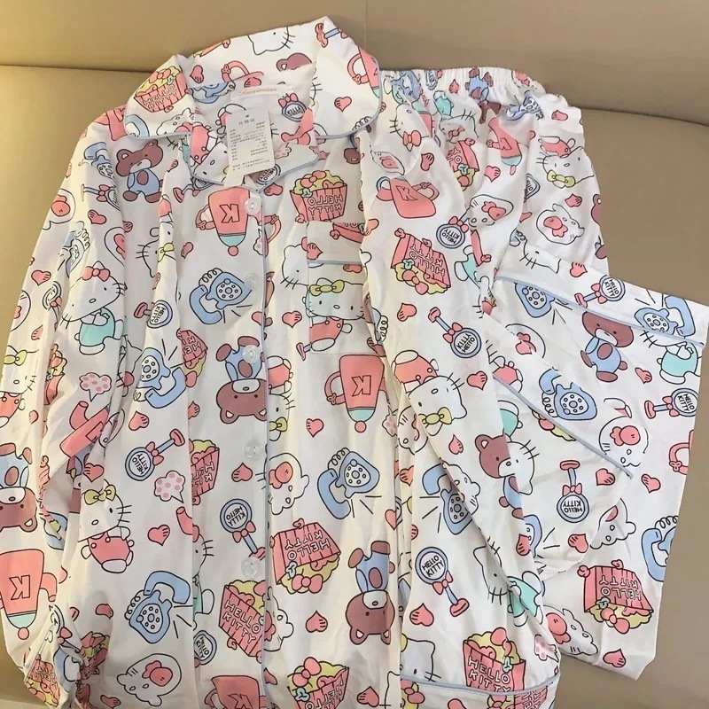 ハローキティhellokitty 春夏新品 かわいい レディース パジャマ ルームウェア セットアップ 部屋着 上下2点セット 長袖 パンツ ズボン期間限定30%