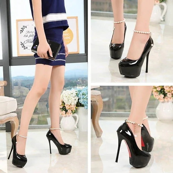キャバ パンプス ハイヒール ピンヒール アンクルストラップ パール ヒール14cm オープントゥ ラウンドトゥ 美脚 大人可愛い パーティー 結婚式 二次会 小さいサイズ 大きいサイズ 21.0 2