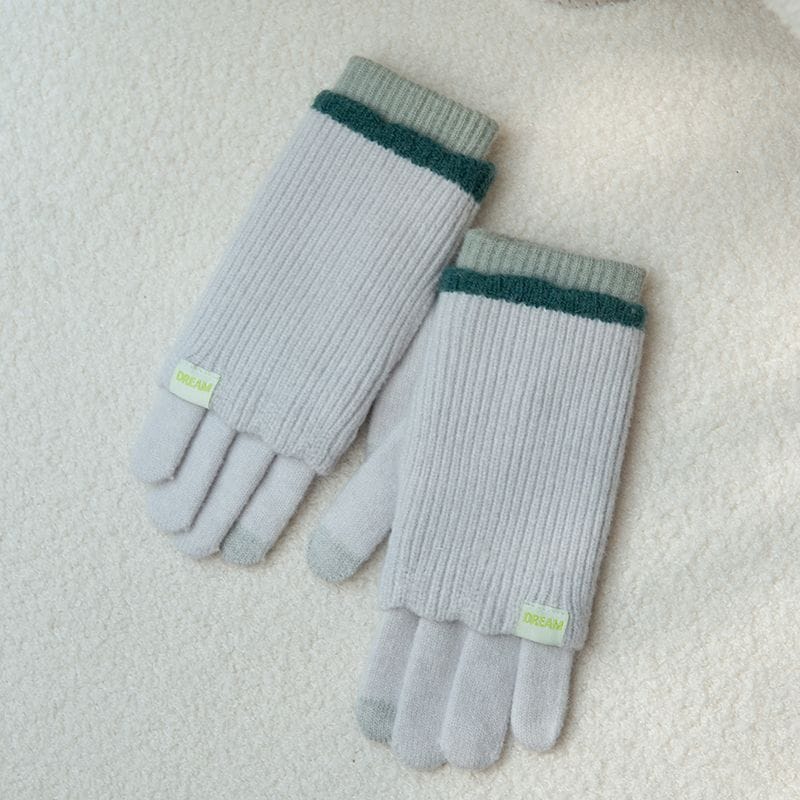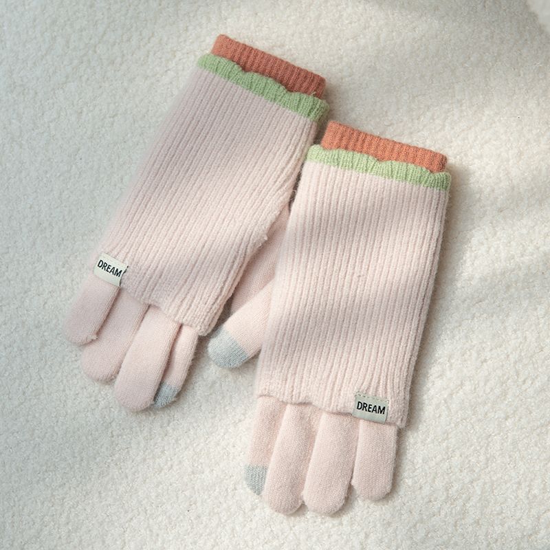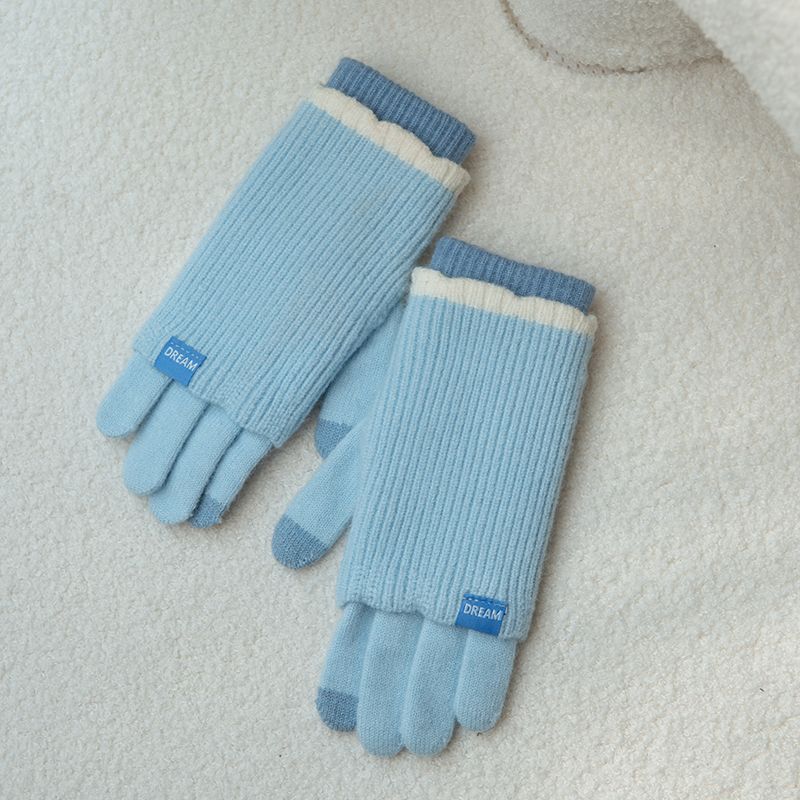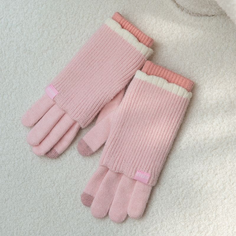 レディース冬用ウール厚く暖かいニット5本指2点セット取り外し可能なタッチスクリーン学生韓国語版サイクリンググローブ30%制限
