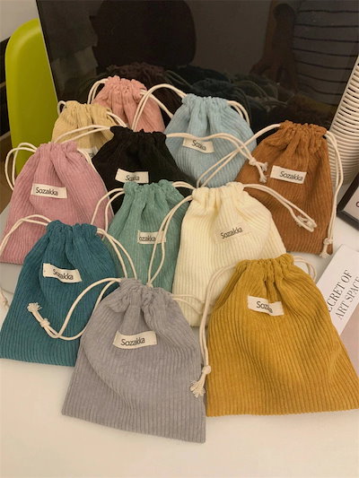 無地コーデュロイ織りラベル収納袋巾着化粧品袋女性用ポータブル大容量30%制限