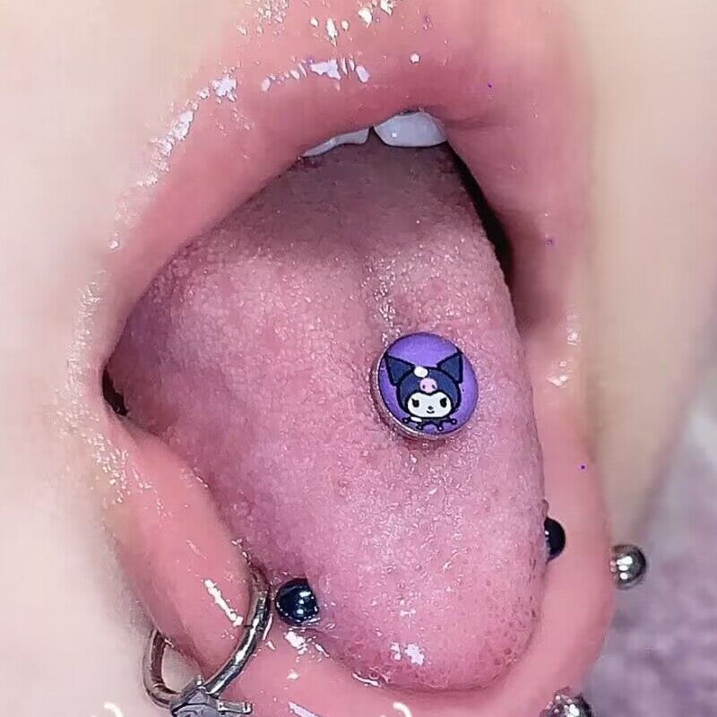 漫画 Kulomi チタン鋼舌ネイルかわいい医療点滴オイル低刺激性チタン鋼舌ネイルボディピアスジュエリー舌リング30%制限