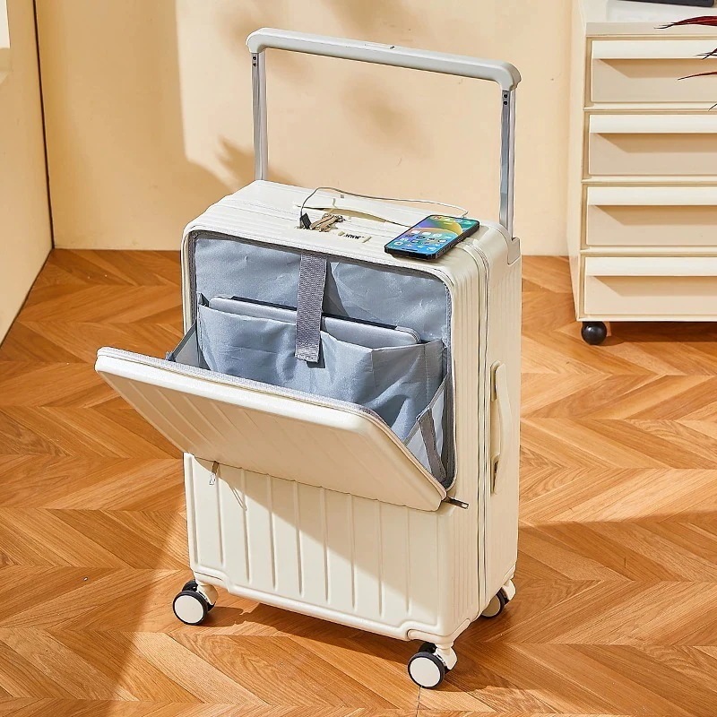スーツケース スーツケース 機内持ち込み フロントオープン 旅行 国内旅 海外旅 ビジネス 出張 静音 キャリーケース キャリーバッグ カップホルダー付き USB充電ポート 360度30%までに制限