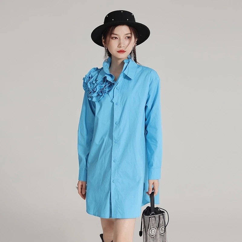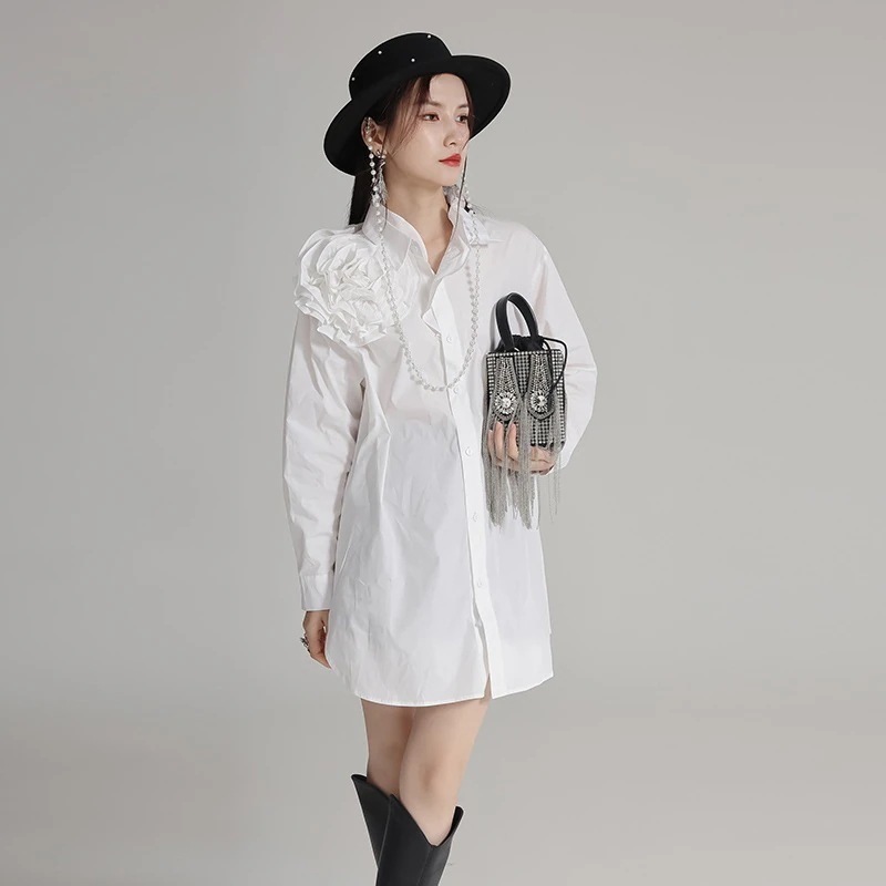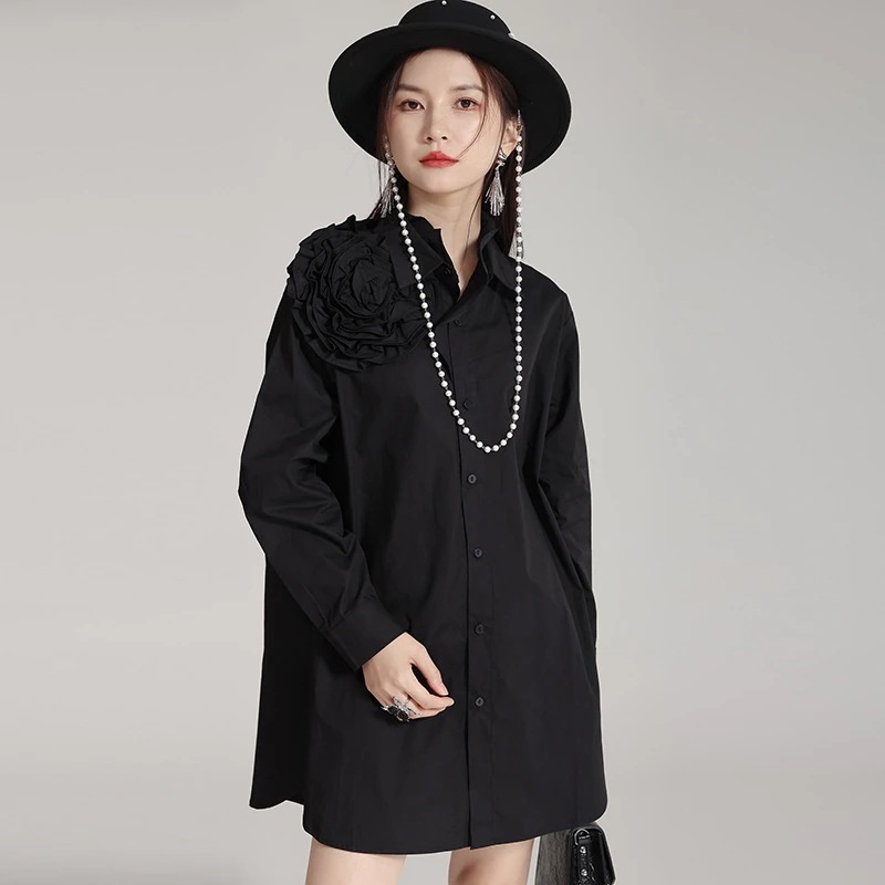 【J.Fashion】 3D花飾り ロンT 高級感 レディース ロングブラウス ロングシャツ 個性的なデザイン 関連商品は店で購入可能30%までに制限