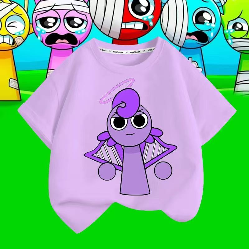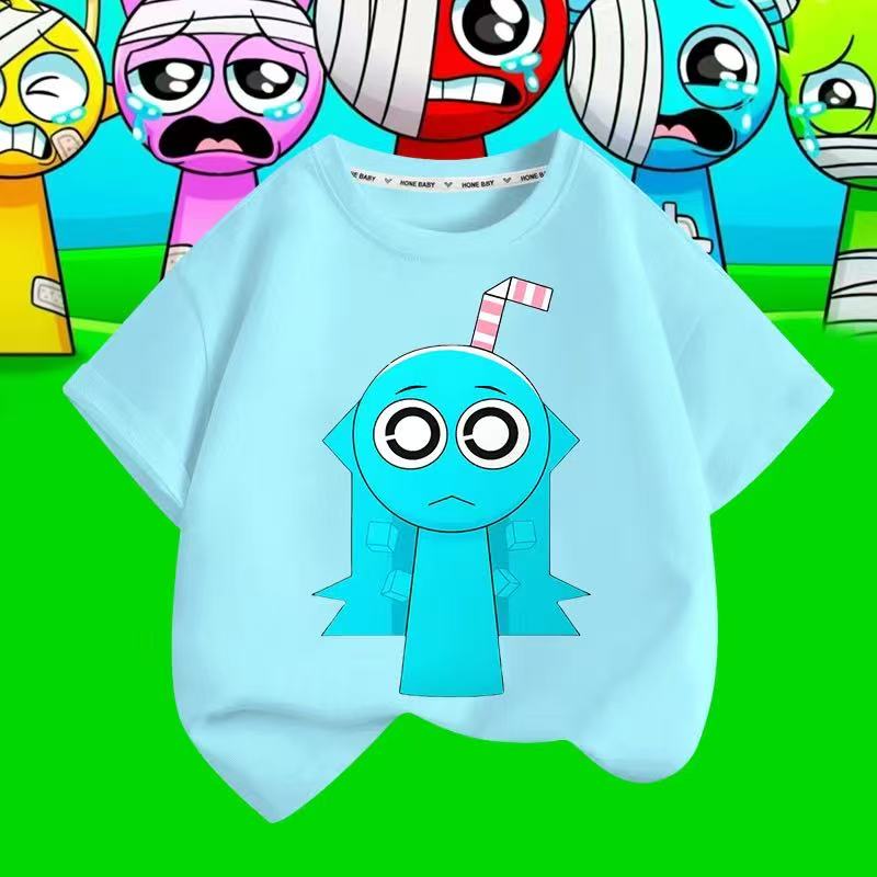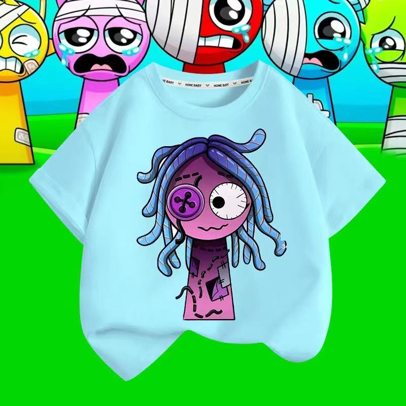スプランキー sprunki plush 子供服 半袖Tシャツ 通気性 肌着 柔らかい 100%綿 丸首 男の子 女の子 子ども服 小学生 トップス通学着 通園着 男女兼用