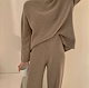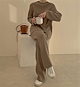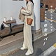 セットアップ ニット レディース ニットセットアップ ニットセーター ニットパンツ プルオーバー リブニット サイドスリット ワイドパンツ プチハイネック 上下セット 長袖 柔らか 無地 秋冬 暖かい