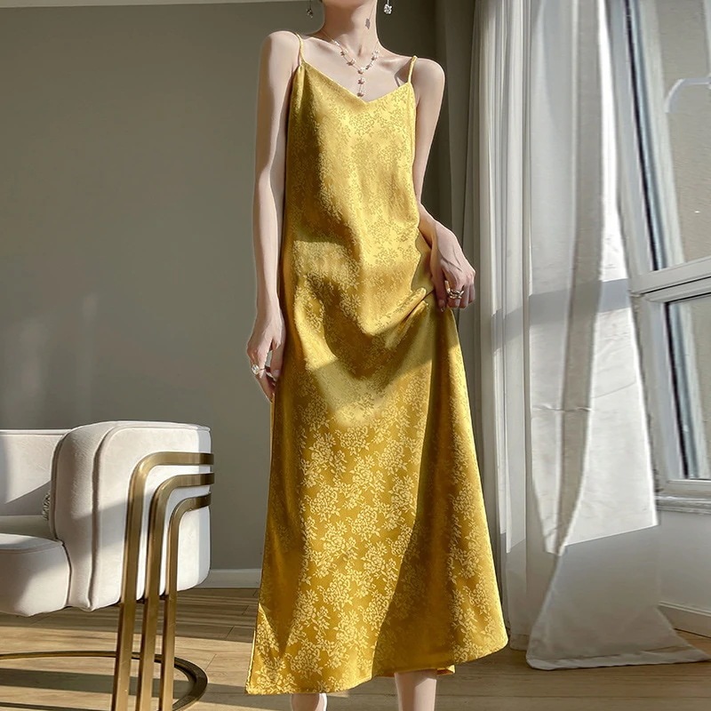 パーティードレス Vネックノースリーブ キャミワンピース 百掛け ワンピース レディース ロング丈30%までに制限