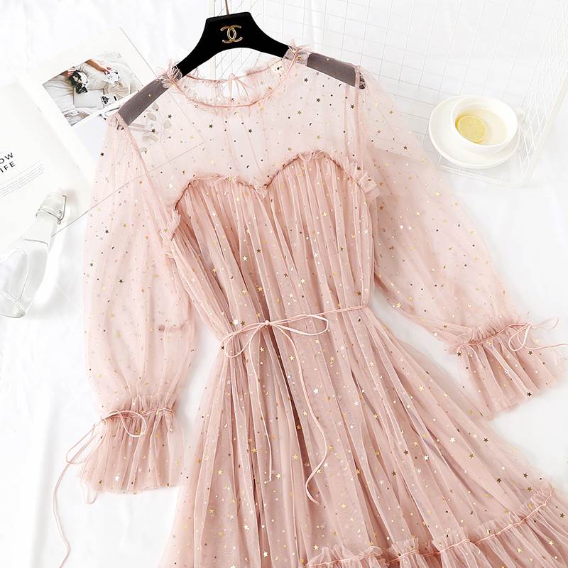 キラキラ メッシュワンピース ドレス 6色 シースルー レディース 結婚式 二次会 お食事会 食事会30%までに制限