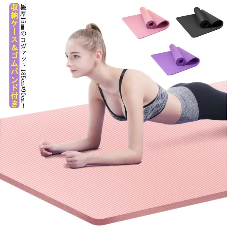 ヨガマット 収納ケース付き ピラティス 15mm エクササイズマット 厚手 極厚 大判 家ヨガ トレーニングマット マット 筋トレ ダンス フィットネス 15mm ダイエット 幅広 ヨガ ストレッチ3