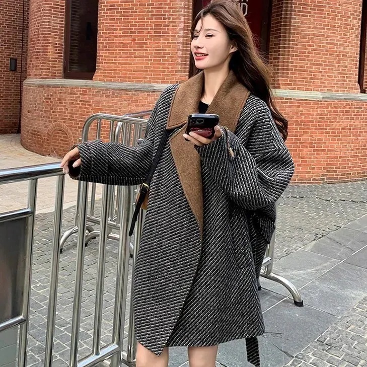 新作 厚手 中綿タイプ/中綿なしタイプ アウター コート 秋冬 ラシャ トップス ゆったりフィット レディース 大人っぽチェスターコ 大きいサイズ 秋服 日系 カーディガン 怠惰な風 百掛け流行り30