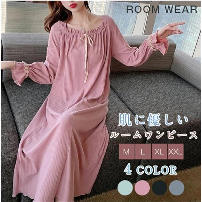 ルームワンピース レディース 部屋着 パジャマ ワンピース ゆったり 体型カバー 大人 可愛い 長袖 ルームウェア ロング丈 マキシ丈 寝着 柔らかめ 春 夏 秋30%までに制限