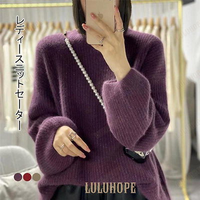 ニットセーター 長袖 セーター レディース ニット ソフト 厚手 トップス アウター クルーネック プルオーバー 柔らかい 暖かい バルーン袖 カジュアル30%までに制限