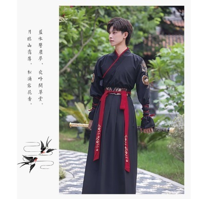 漢服男子古式武術剣士男子大型学生クラス制服スーツ中国風孫春秋古式衣装30%までに制限