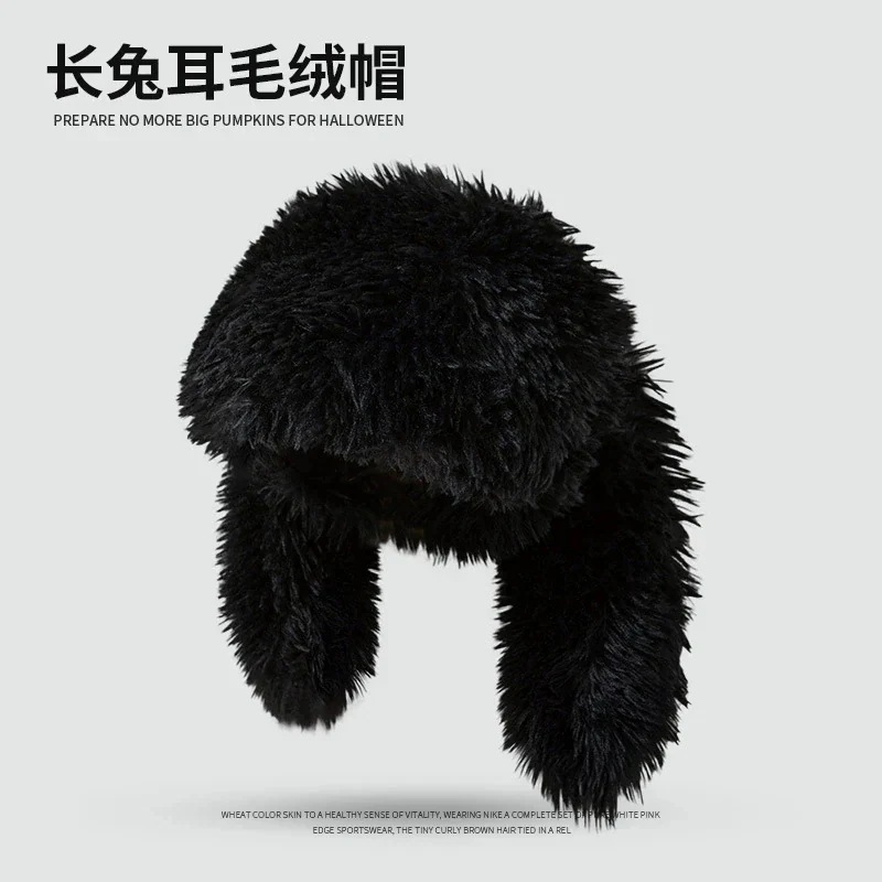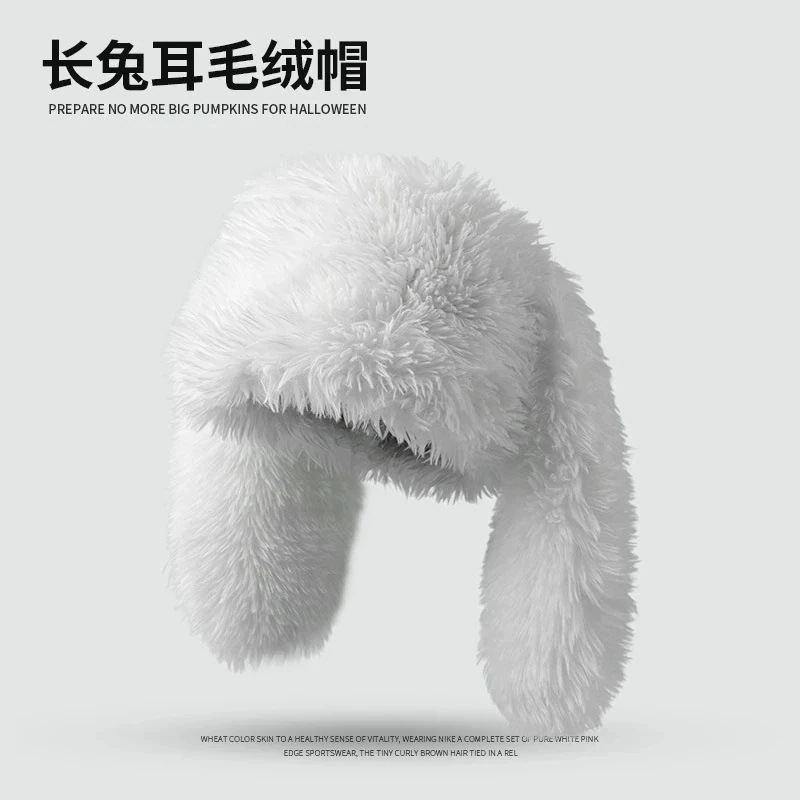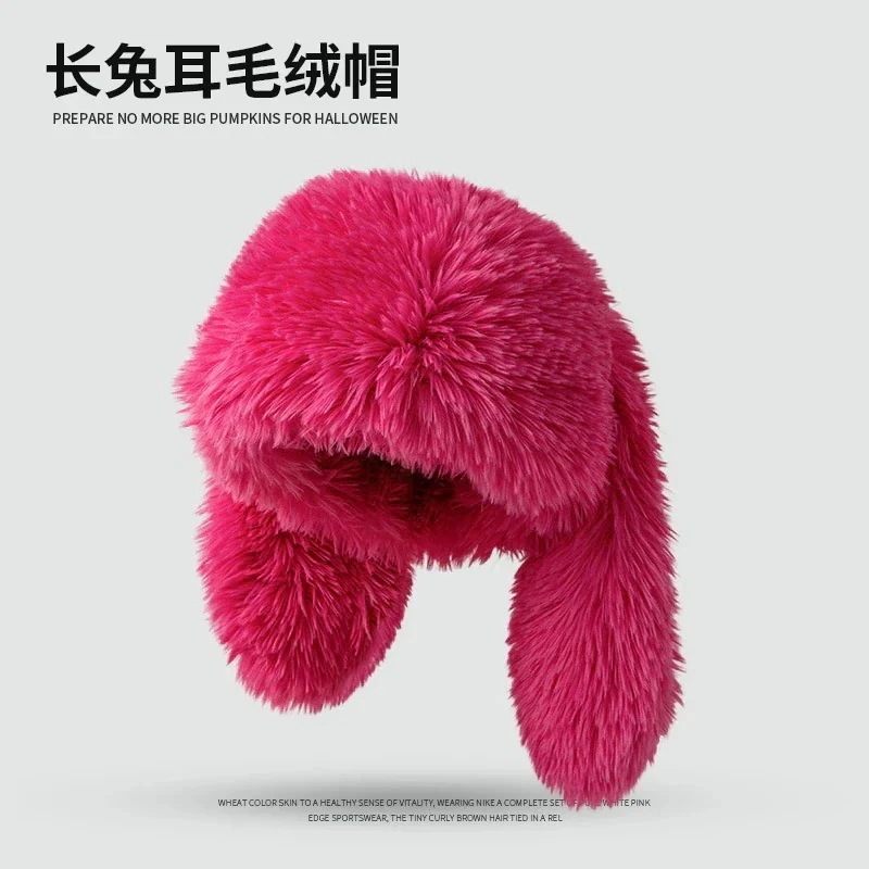 当店の甘くて可愛いウサギの耳ぬいぐるみ帽子女性厚め保温防寒個性耳保護頭帽子