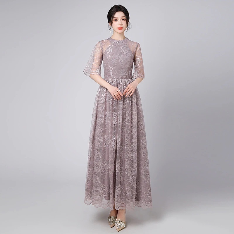 【縁夢】 七分袖 イブニングドレス ドッキング レース シフォン ロングワンピース チュール イブパーティードレス キャバ 着痩せ 大人 同窓会 披露宴 卒業式 結婚式 演奏会 ウェディング 二次会3