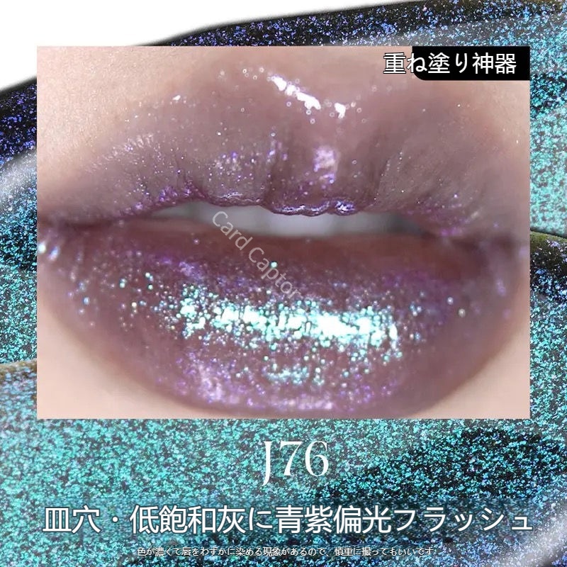 薄く塗れば良い感じに偏光ラメが輝くので思ってたより普段使い出来そうな印象です。でも、ダークな色にしっかり偏光ラメなので全然自然ではないです。あくまで「思ってたよりは」····です!笑