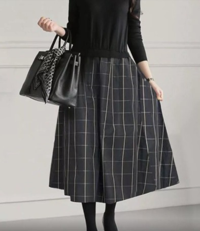 ワンピース ロングワンピ ニットドッキングワンピ 加工Aライン マキシ丈 クルーネックワンピース マキシワンピース無地 長袖 ラウンドネッック きれいめ