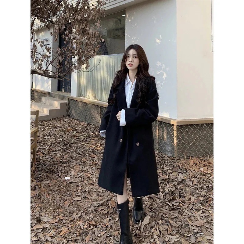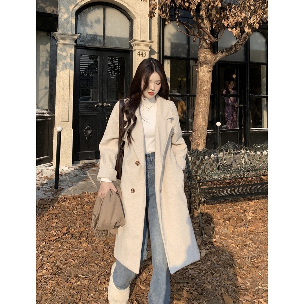ヘップバーンスタイルの女性のウールのコート 冬の新しいキルティングと厚みのある小人ルーズミッドレングス長袖コート
