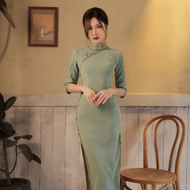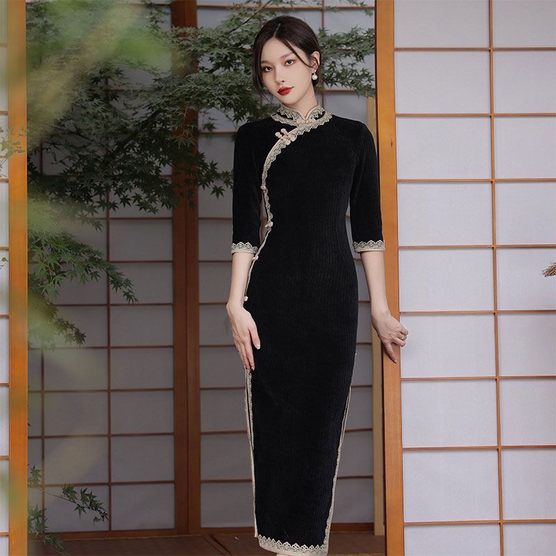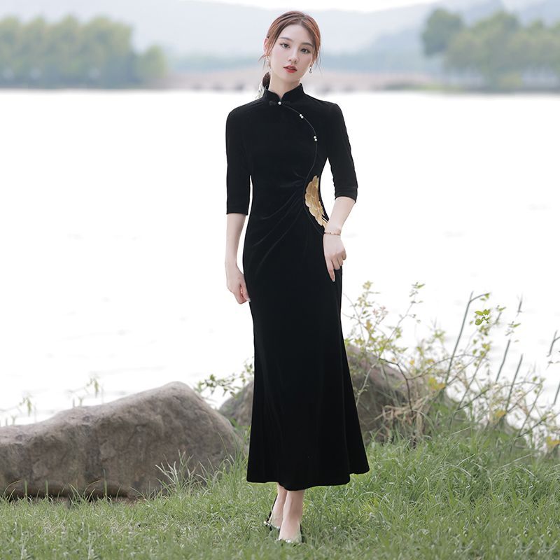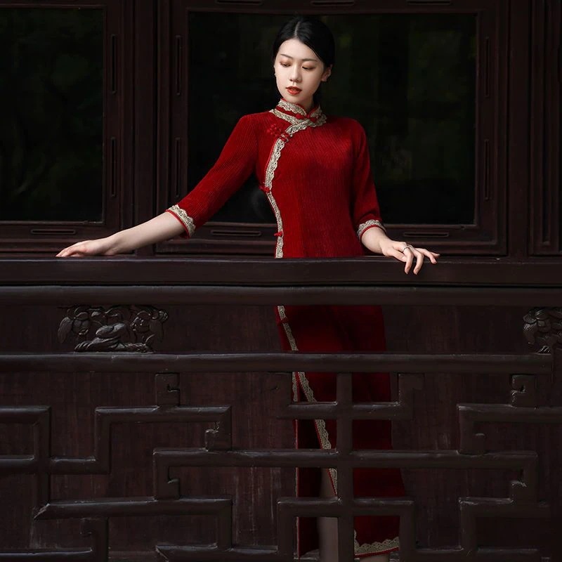 花嫁のための赤いチャイナドレス乾杯スーツな気質長袖の女の子若いスタイル改良された結婚式新しい風のロングスタイル