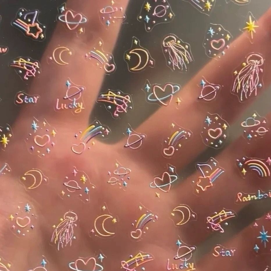 プラネットオーロラネイルシール5Dエンボス加工子供ファンタジー子供DIY水カップカメラシール