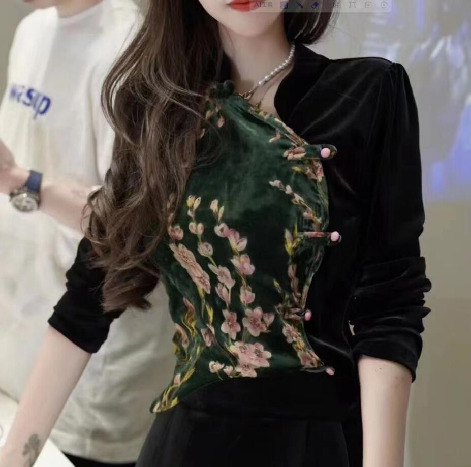 チャイナ服ブラウスレディース長袖シャツ 可愛い韓国ファッション NC343 2COLOR
