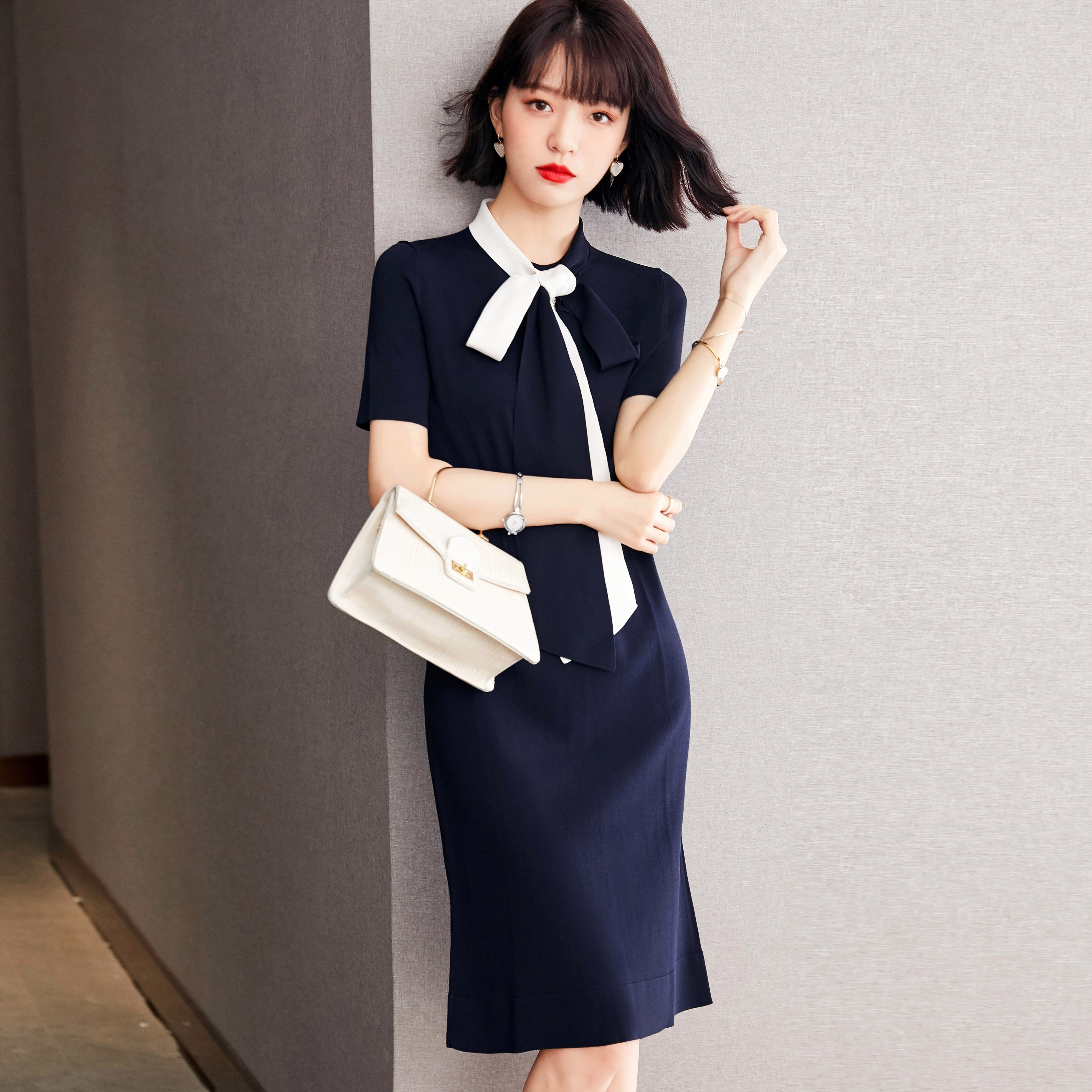 膝丈ワンピース 春夏新作 半袖ワンピース ボートネック Aラインスカートオシャレ韓風