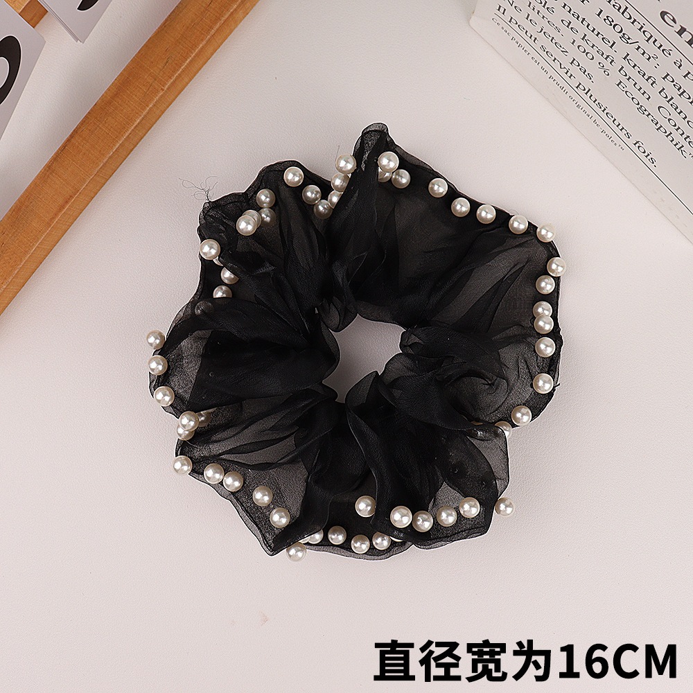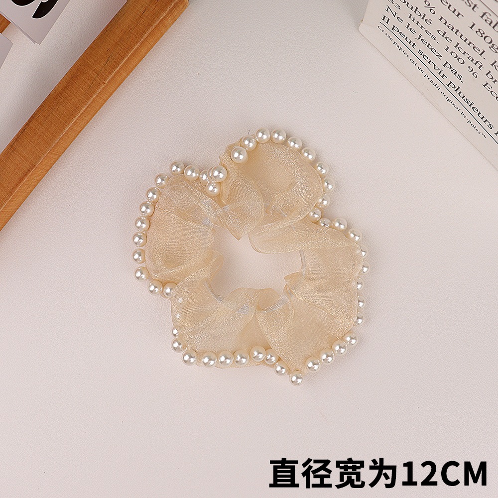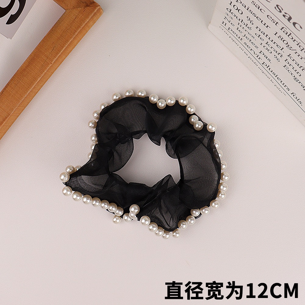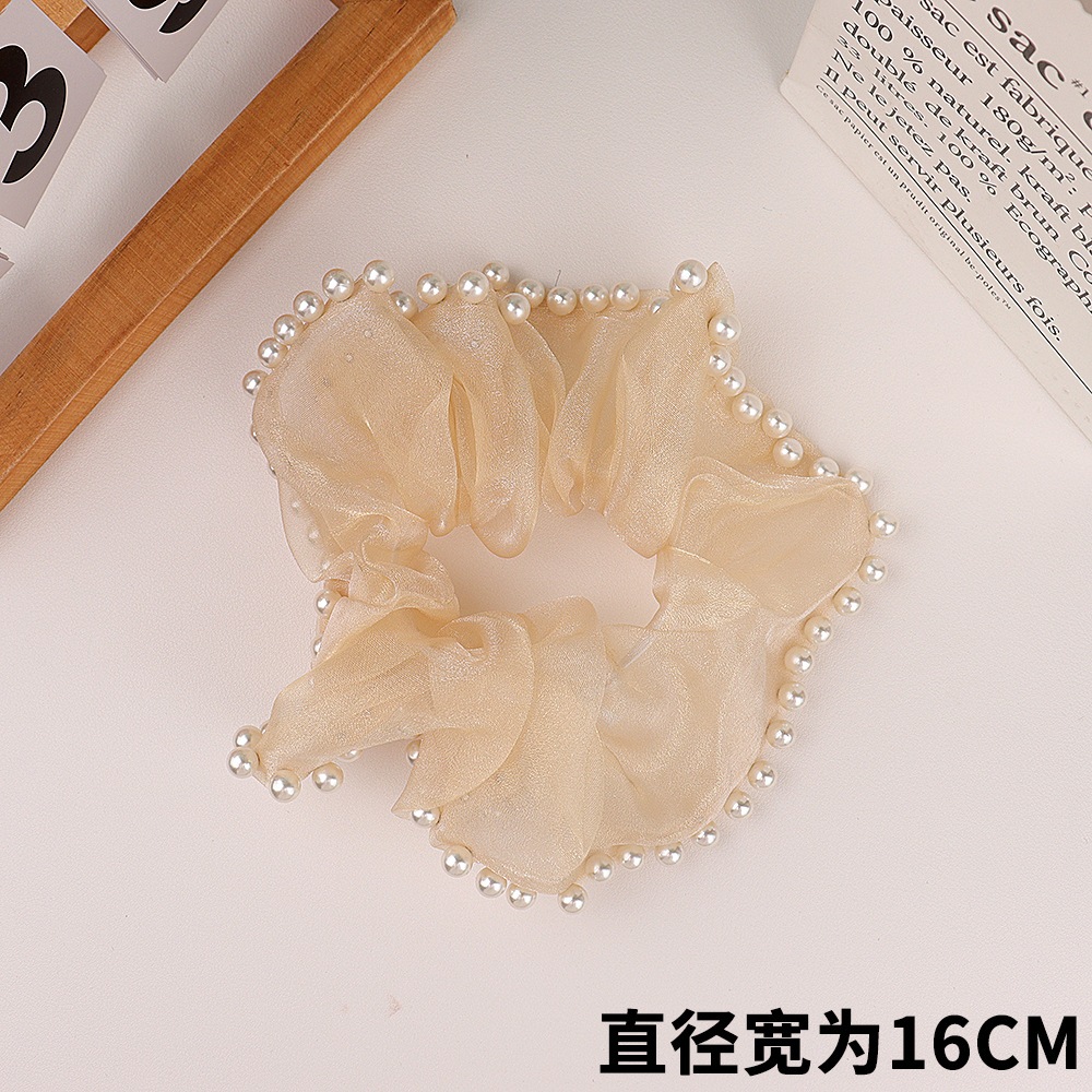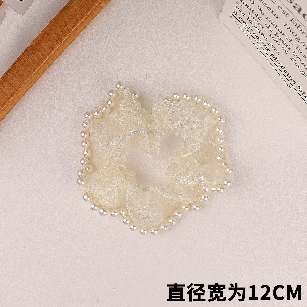 Douyin の同じスタイル 2025 新しいメッシュ脂肪腸リングパールヘッドロープハイエンド森林ヘアゴムバンド