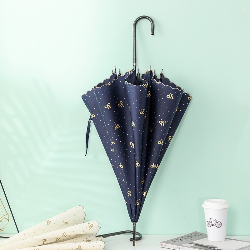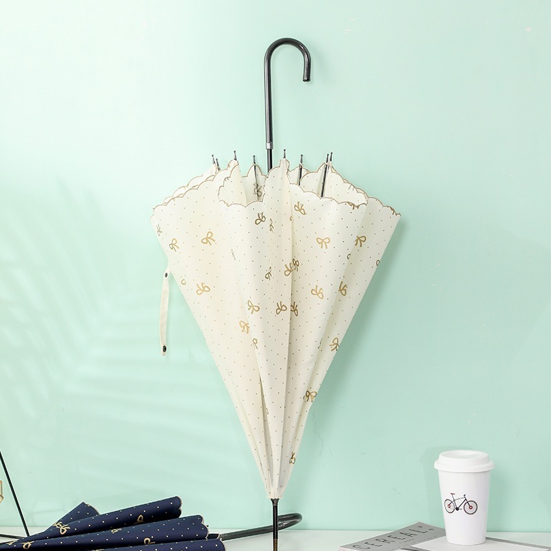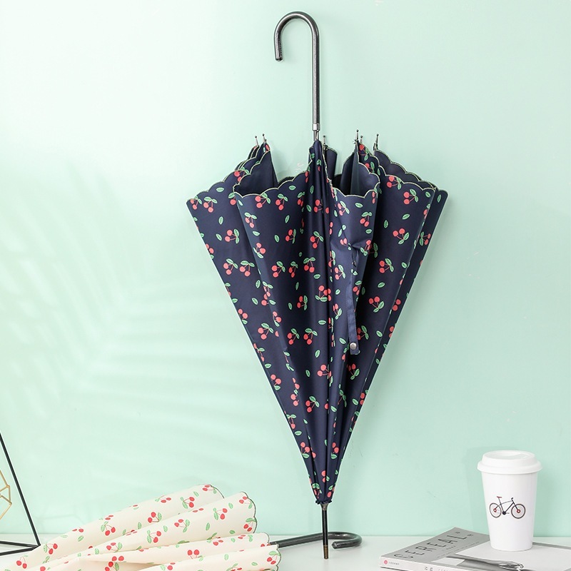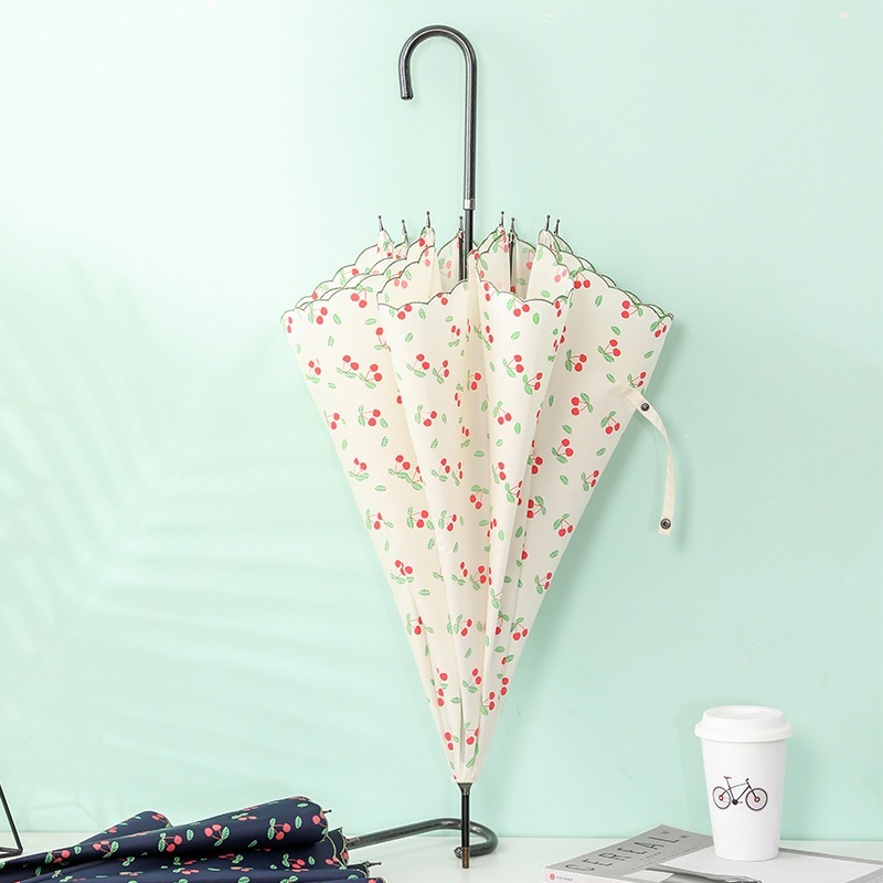 日本のかわいい桜長柄傘カーブフック細い柄の晴雨傘女性の刺繍超軽量耐風傘ワンピースドロップシッピング