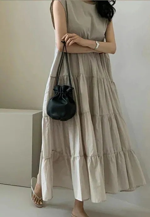 少しゆったりで綿麻混素材で涼しいです。152センチで足首上10センチくらいの丈感でちょうど良かったです。写真のモデルさんのよりティアード部分がボリュームがありけっこう広がります。日差しの下で見ると下に何か着ないと透けます。洗濯時にシワをきちんと伸ばして干さないとシワだらけになります。
