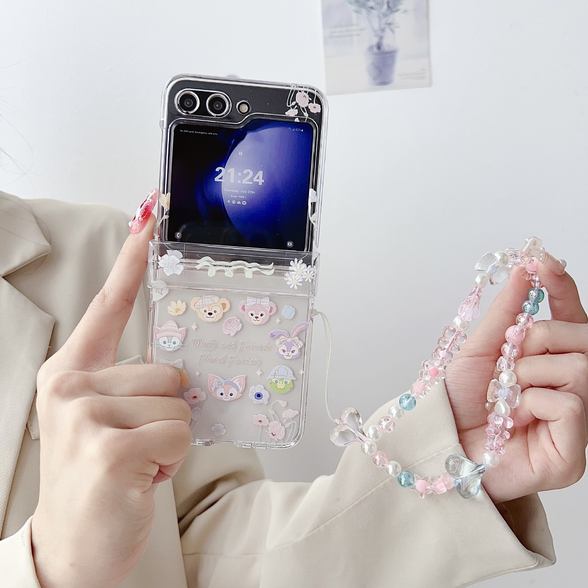 日本と韓国の漫画サムスン zflip5 折りたたみ携帯電話ケース落下防止 zflip3/4 保護カバー透明 PC