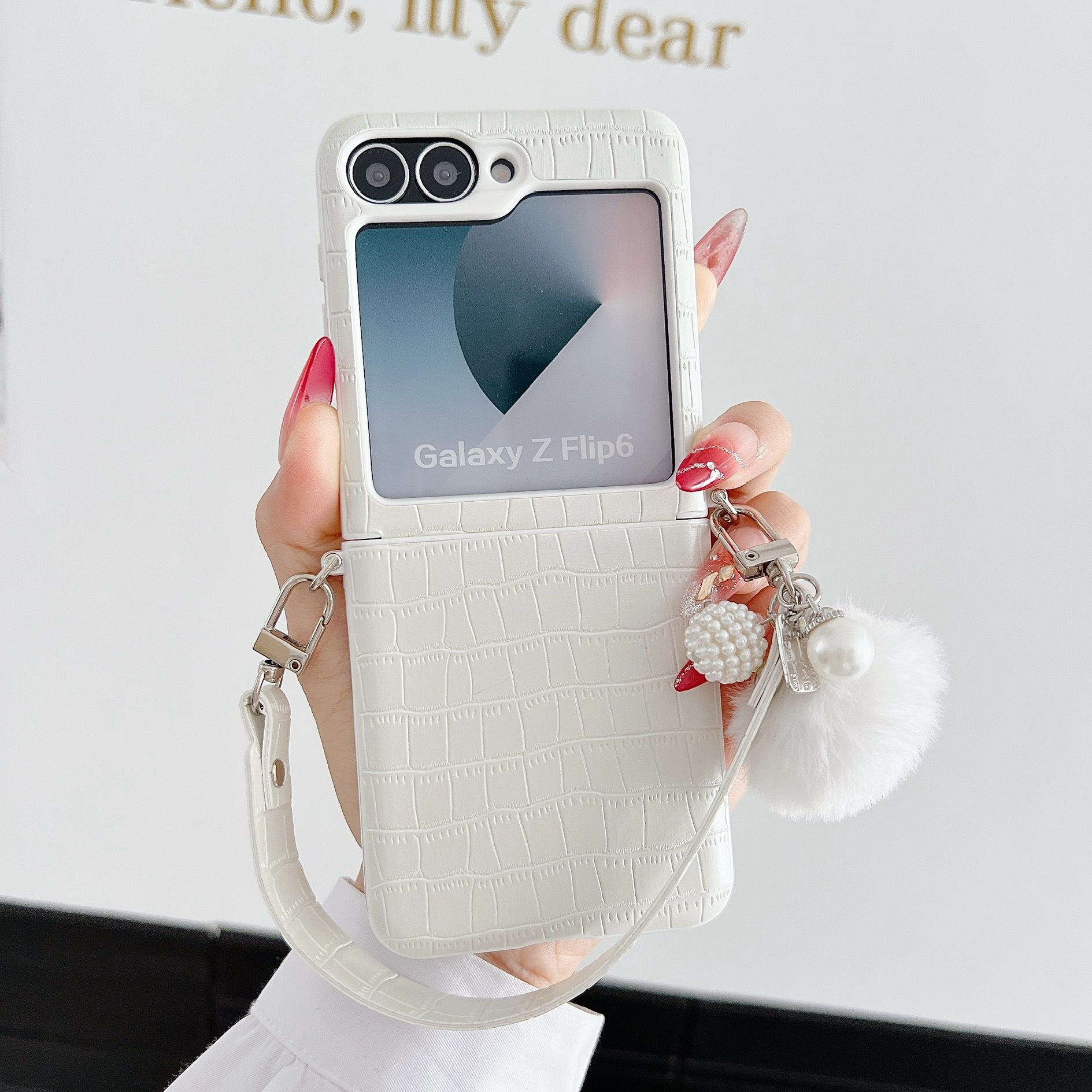 ホワイトレザーの質感は同じストラップ付き携帯電話ケースを備えたSamsung Zflip6折りたたみスクリーン中心軸のオールインクルーシブzflip5に適しています