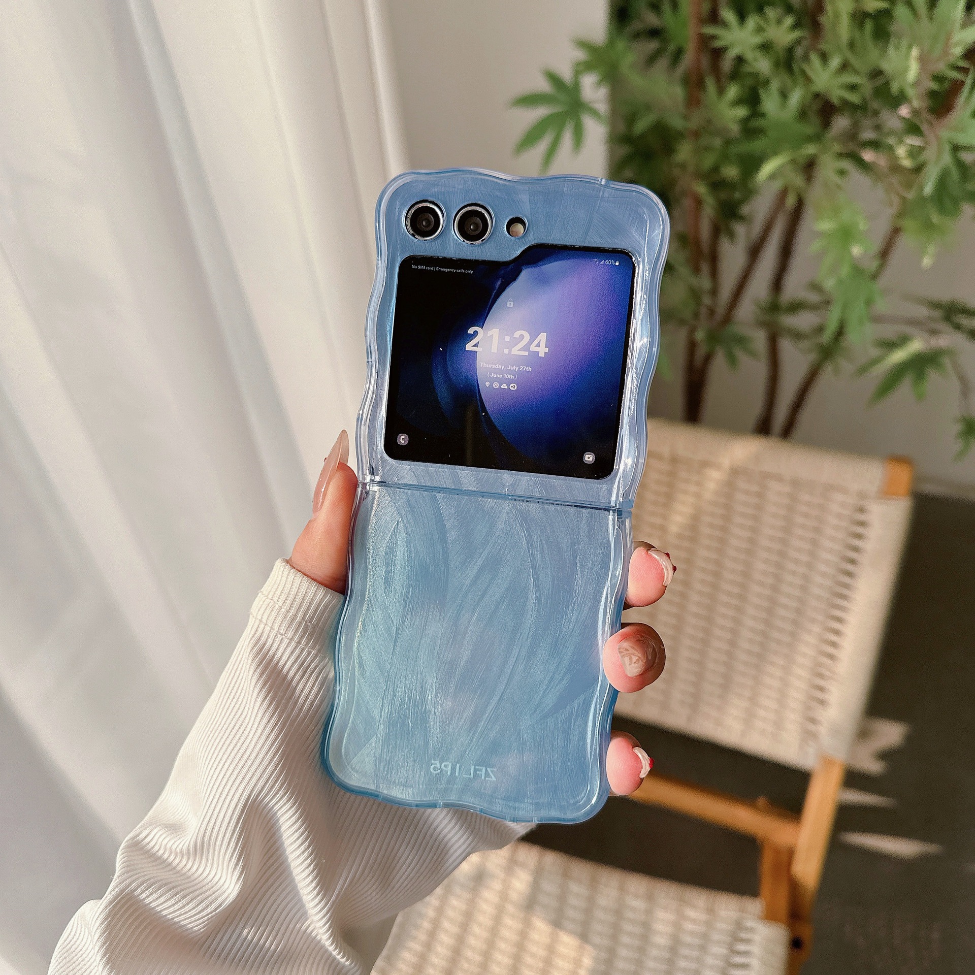 Samsung Galaxy ZFlip3/4 折りたたみスクリーン携帯電話ケース ZFlip6/5 シンプルなツイストエッジに適したグラデーションフェザーヤーン