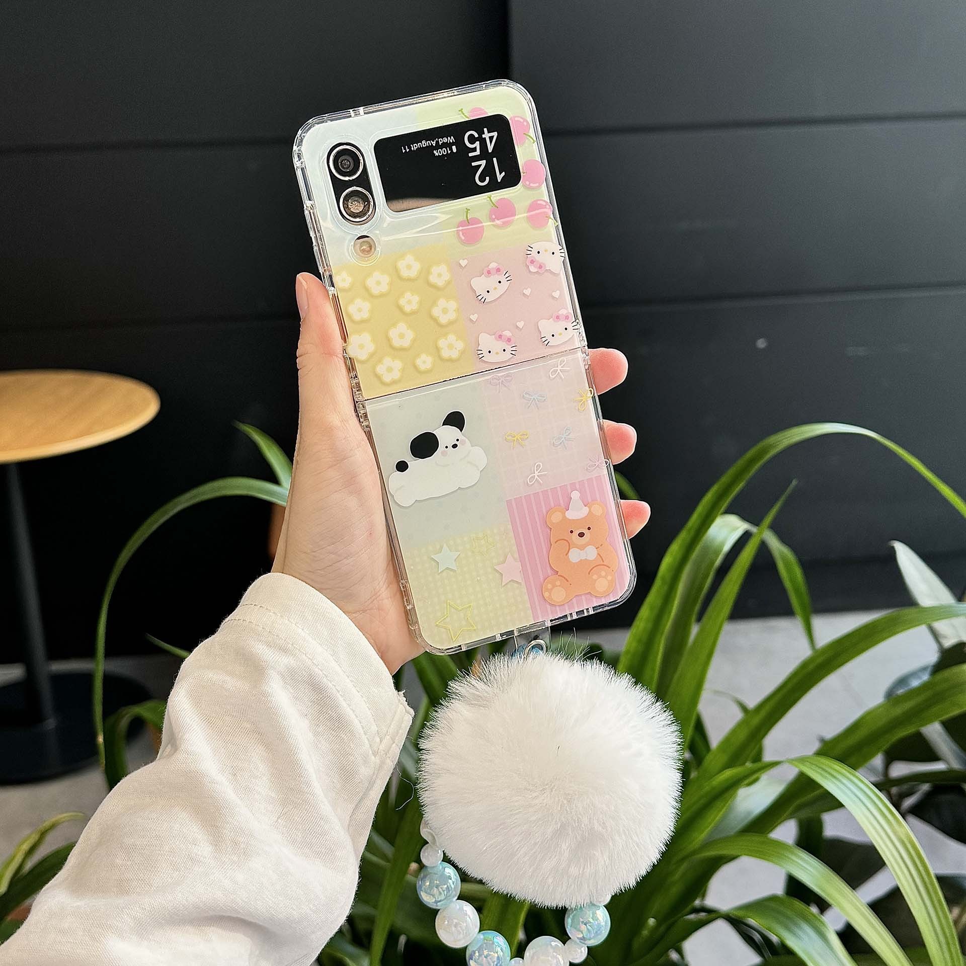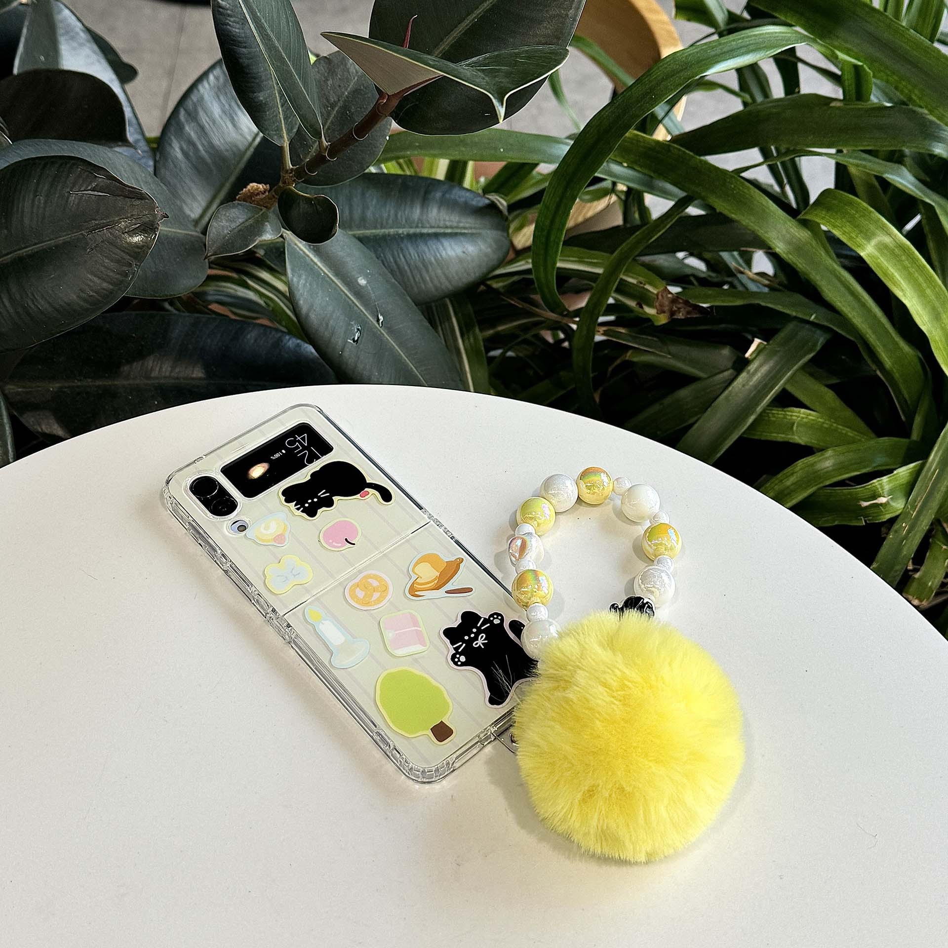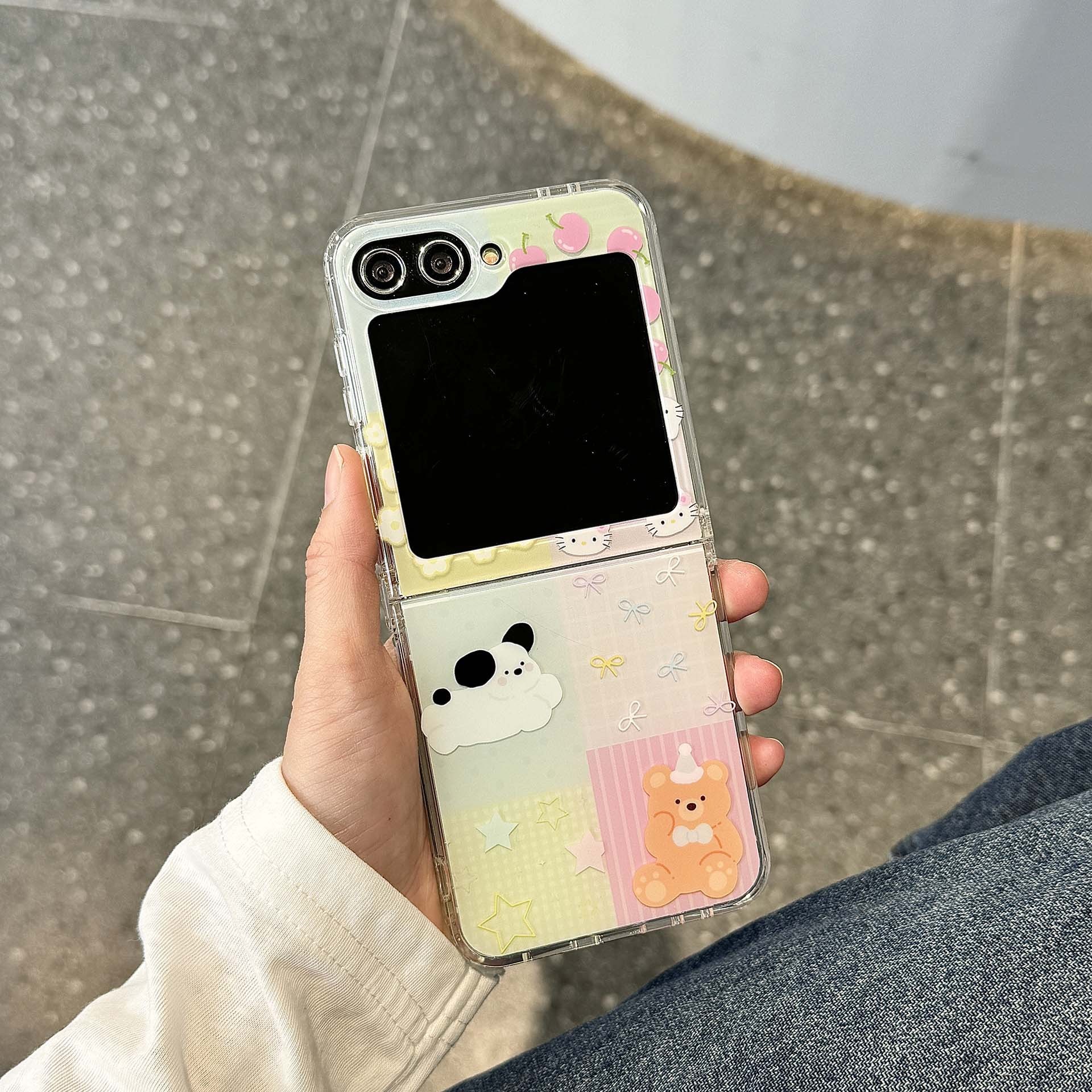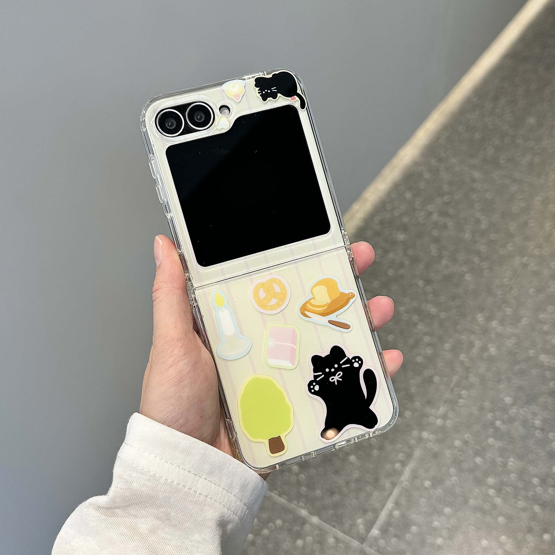 新モデルに適したサムスン zflip6 折りたたみ携帯電話ケース第 5 世代スナック黒猫 4/3 漫画女性スタイル韓国保護カバー