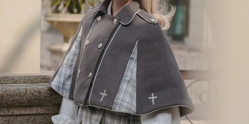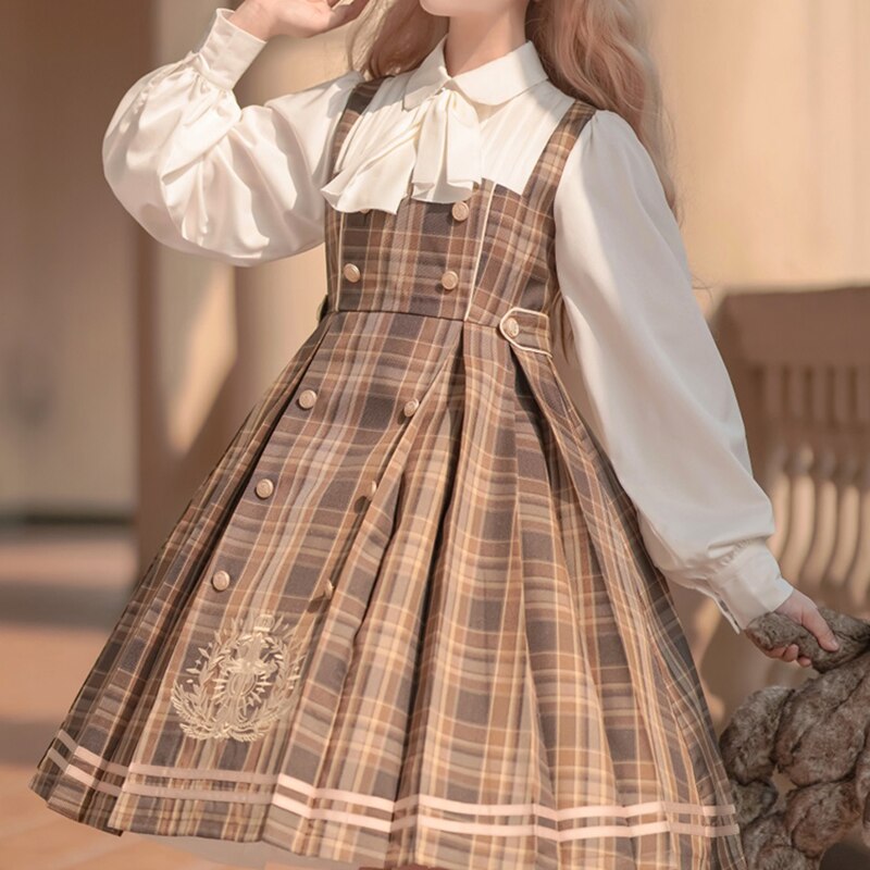 ロリータ ワンピース 長袖 探偵風 jk制服 マント 復古cla系 チェックワンピース 重ね着