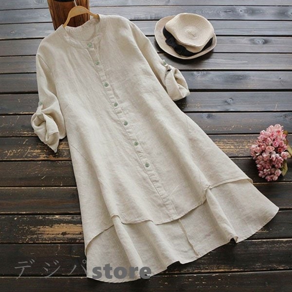 綿麻混ワンピース レディース 40代 夏 春 トップス ロングシャツ チュニック ゆったり シャツワ